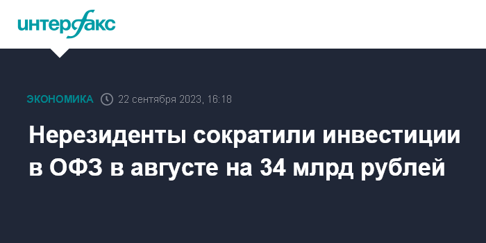 Нерезиденты сократили инвестиции в ОФЗ в августе на 34 млрд рублей