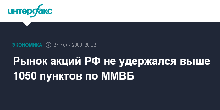 Москва. 27 июля. INTERFAX.RU - Российский рынок акций, несколько раз в течение дня преодолевавший уровень в 1050 пунктов по индексу ММВБ, в итоге так и не смог удержаться выше этой отметки под влиянием начавших корректироваться вниз мировых цен на нефть.