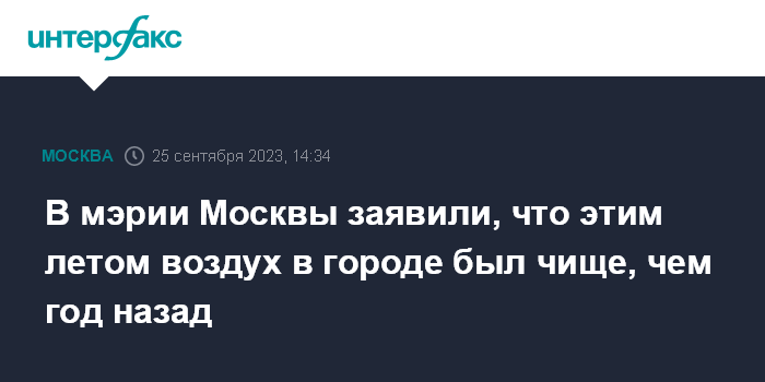 Москва. 25 сентября. INTERFAX.RU - Минувшим летом атмосферный воздух в Москве был чище, чем летом 2022 года; сохраняется положительная тенденция снижения средних концентраций загрязняющих веществ, сообщил журналистам исполняющий обязанности заместителя мэра города по вопросам ЖКХ и благоустройства Петр Бирюков.