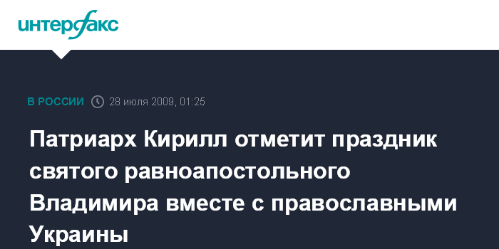 В своем выступлении накануне перед журналистами патриарх Кирилл отметил, что святой Владимир тысячу лет назад создал "единый источник - Православную церковь, общую для русских и украинцев, которая должна сегодня объединять народы обоих государств, вне зависимости от их политических предпочтений, симпатий или антипатий".
