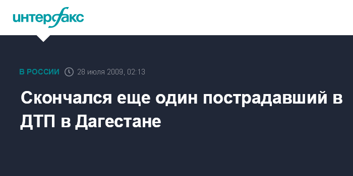 Ростов-на-Дону. 28 июля. ИНТЕРФАКС-ЮГ - Один из пострадавших в ДТП в Ногайском районе Дагестана скончался в больнице, всего погибли 10 человек, шестеро пострадали, сообщили агентству "Интерфакс-Юг" в пресс-службе Южного регионального центра МЧС России.