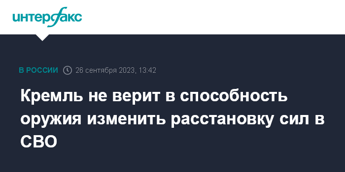Кремль не верит в способность оружия изменить расстановку сил в СВО
