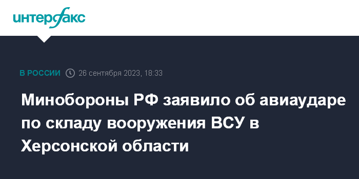 Минобороны РФ заявило об авиаударе по складу вооружения ВСУ в Херсонской области