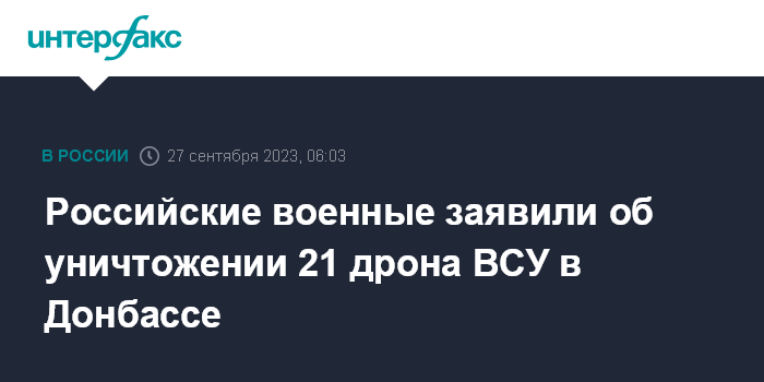 Российские военные заявили об уничтожении 21 дрона ВСУ в Донбассе