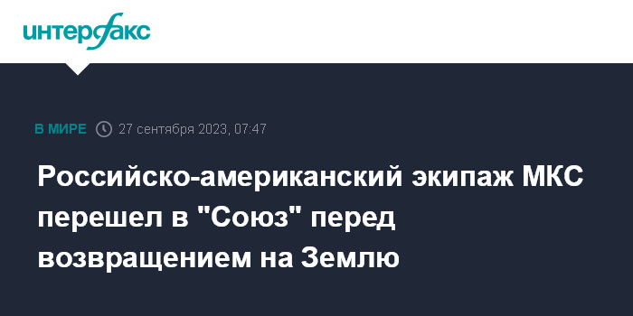 Москва. 27 сентября. INTERFAX.RU - Космонавты "Роскосмоса" Сергей Прокопьев, Дмитрий Петелин и астронавт NASA Франциско Рубио перешли с борта Международной космической станции (МКС) на корабль "Союз МС-23", трансляцию ведет "Роскосмос".