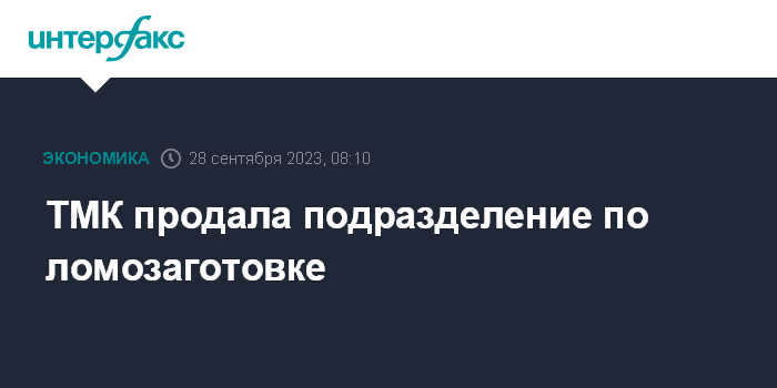 Москва. 28 сентября. INTERFAX.RU - "Трубная металлургическая компания" продала подразделение по ломозаготовке. Новым владельцем ООО "ТМК Мета" и ООО "Мета-Инвест" стало ООО "Чермет Сервис", согласно данным ЕГРЮЛ.