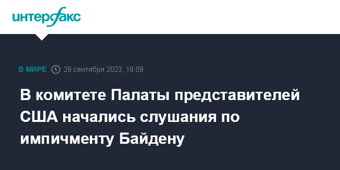 Москва. 28 сентября. INTERFAX.RU - В комитете по надзору Палаты представителей США в четверг приступили к слушаниям по импичменту президенту Джо Байдену, сообщает в четверг CNN.