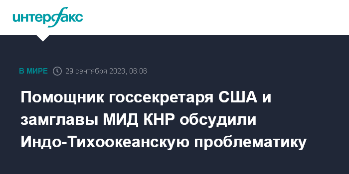 Помощник госсекретаря США и замглавы МИД КНР обсудили Индо-Тихоокеанскую проблематику