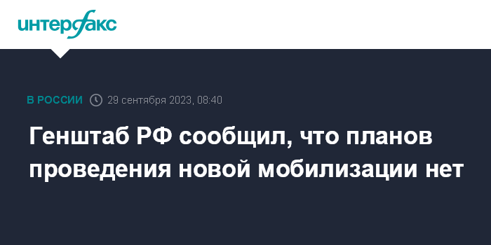Москва. 29 сентября. INTERFAX.RU - Российский Генштаб заявил, что не планирует проводить дополнительную мобилизацию,