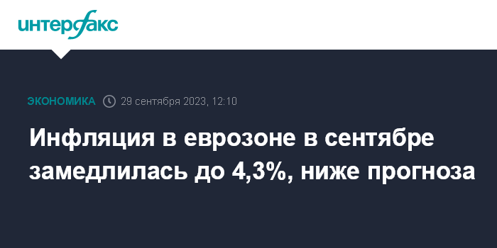 Инфляция в еврозоне в сентябре замедлилась до 4,3%, ниже прогноза