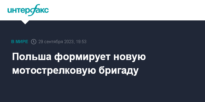 Москва. 29 сентября. INTERFAX.RU - На севере Польши формируется новая мотострелковая бригада, сообщил агентству PAP министр национальной обороны страны Мариуш Блащак.