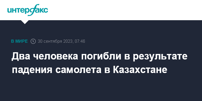 Москва. 30 сентября. INTERFAX.RU - В Карагандинской области Казахстана во время учебно-тренировочного полета разбился самолет, два человека погибли, сообщил комитет гражданской авиации страны в субботу.