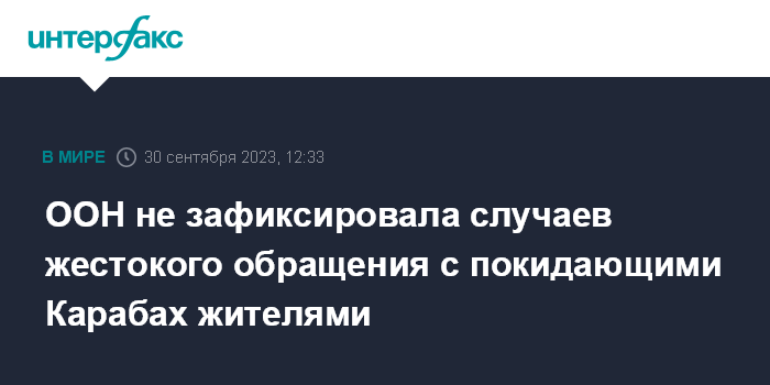 ООН не зафиксировала случаев жестокого обращения с покидающими Карабах жителями