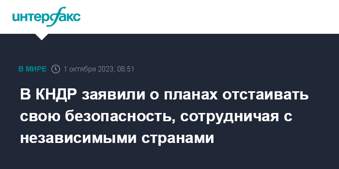 В КНДР заявили о планах отстаивать свою безопасность, сотрудничая с независимыми странами