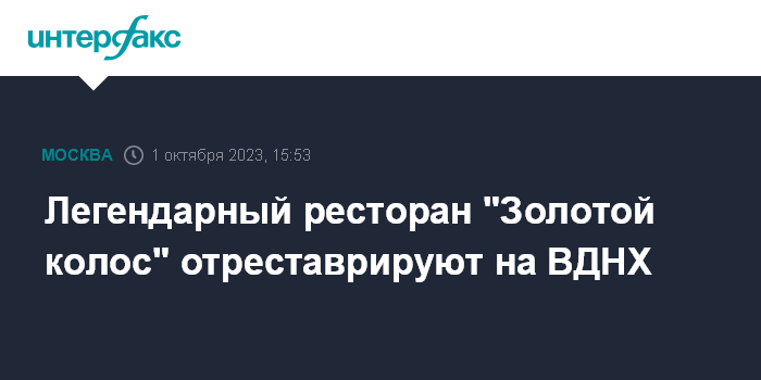 Легендарный ресторан "Золотой колос" отреставрируют на ВДНХ