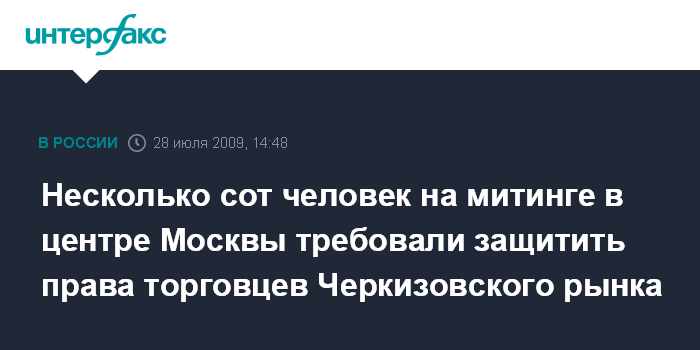 Москва. 28 июля. INTERFAX.RU – Активисты оппозиционного движения "Левый фронт" во вторник провели в Москве митинг в знак солидарности с работниками предприятий, лишившихся и ограниченных в работе в результате экономического кризиса, в том числе с бывшими работниками Черкизовского рынка, сообщил координатор движения Сергей Удальцов.