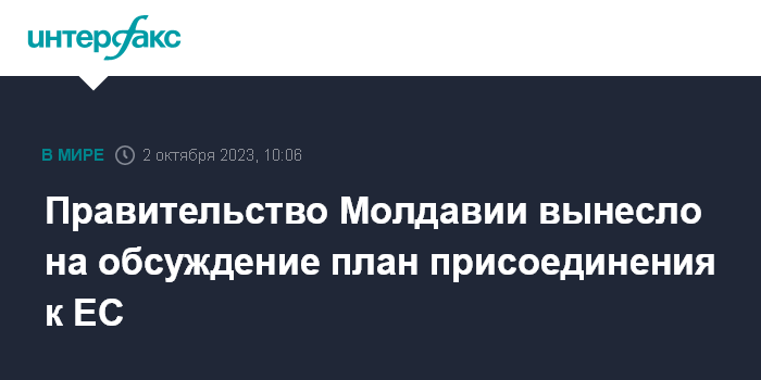 Москва. 2 октября. INTERFAX.RU - Правительство Молдавии вынесло на публичные консультации Национальный план вступления Молдавии в Евросоюз. Об этом сообщил министр иностранных дел и европейской интеграции (МИДЕИ) Нику Попеску.