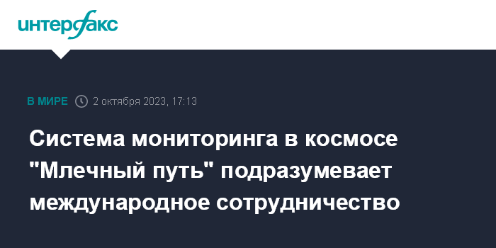 Система мониторинга в космосе "Млечный путь" подразумевает международное сотрудничество