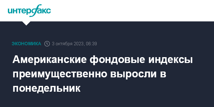 Москва. 3 октября. INTERFAX.RU - Американские фондовые индексы преимущественно выросли в понедельник, однако индекс "голубых фишек" Dow Jones Industrial Average снизился на фоне роста доходности гособлигаций США.