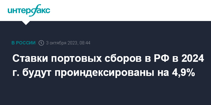 Ставки портовых сборов в РФ в 2024 г. будут проиндексированы на 4,9%