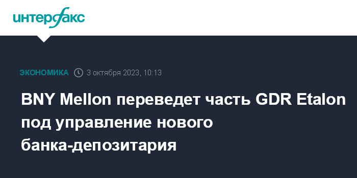 BNY Mellon переведет часть GDR Etalon под управление нового банка-депозитария