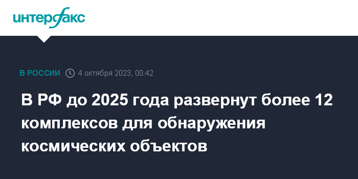 "В рамках реализации программы совершенствования и развития российской системы контроля космического пространства космические войска продолжают работу по созданию специализированных наземных средств контроля космического пространства нового поколения. До 2025 года на территории России планируется развернуть более 12 новых оптико-электронных и радиотехнических комплексов, реализующих различные принципы обнаружения и распознавания космических объектов", - сказано в сообщении.