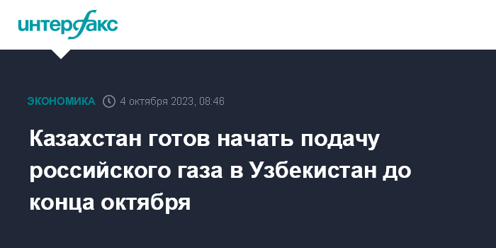 Казахстан готов начать подачу российского газа в Узбекистан до конца октября