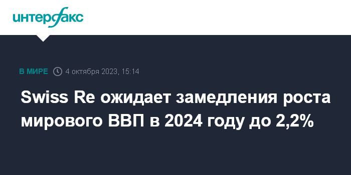 Swiss Re ожидает замедления роста мирового ВВП в 2024 году до 2,2%