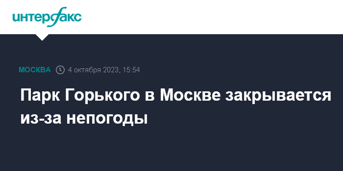 Москва. 4 октября. INTERFAX.RU - Парк Горького в Москве закроется из-за плохой погоды. Об этом сообщил телеграм-канал ЦПКиО.