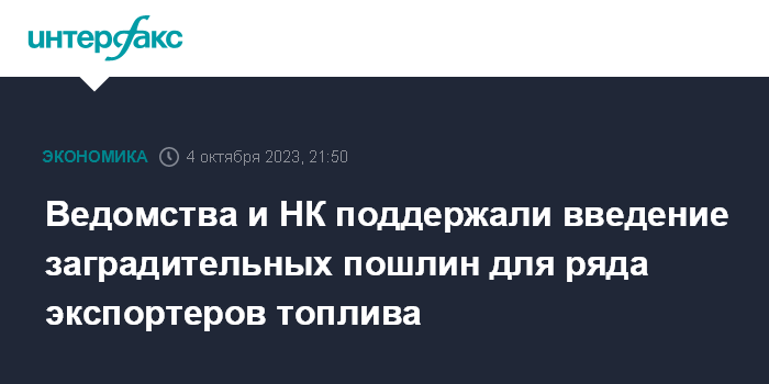 Ведомства и НК поддержали введение заградительных пошлин для ряда экспортеров топлива
