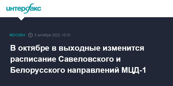 В октябре в выходные изменится расписание Савеловского и Белорусского направлений МЦД-1