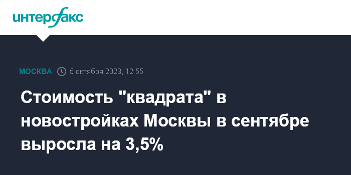 Стоимость "квадрата" в новостройках Москвы в сентябре выросла на 3,5%