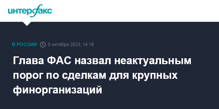 Глава ФАС назвал неактуальным порог по сделкам для крупных финорганизаций