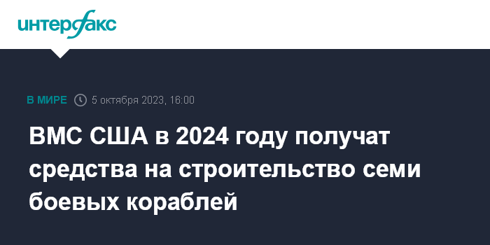 ВМС США в 2024 году получат средства на строительство семи боевых кораблей