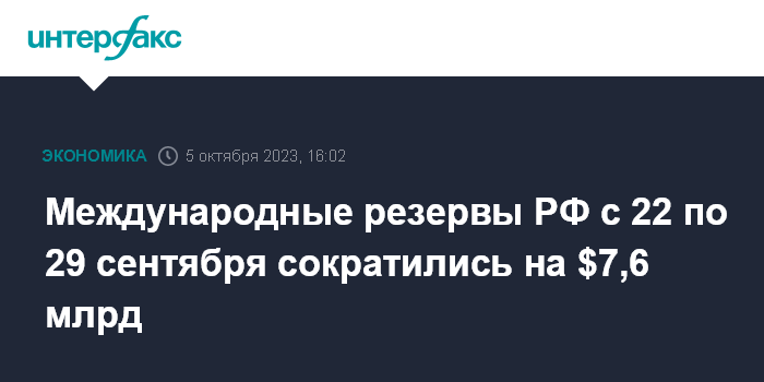 Международные резервы РФ с 22 по 29 сентября сократились на $7,6 млрд