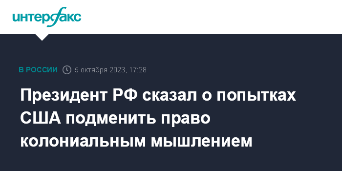Президент РФ сказал о попытках США подменить право колониальным мышлением
