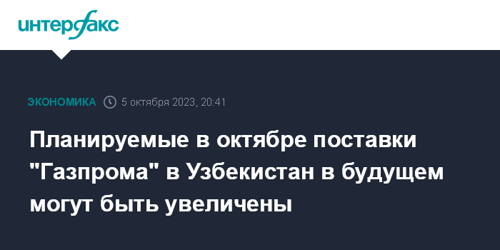 Планируемые в октябре поставки "Газпрома" в Узбекистан в будущем могут быть увеличены