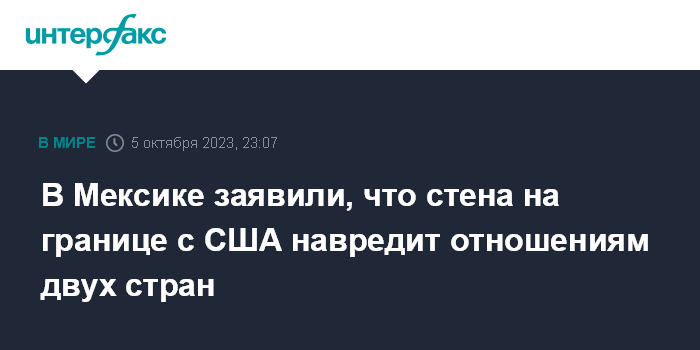 Москва. 5 октября. INTERFAX.RU - Президент Мексики Андрес Мануэль Лопес Обрадор в четверг выступил с критикой планов США продолжить строительство заграждений вдоль границы двух стран.