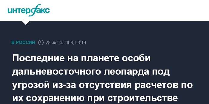 По ее словам, "в ОВОС только одной строчкой дается информация, что в зону строительства попадают 14 дальневосточных леопардов".