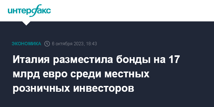 В июне 2023 года Италия привлекла более 18 млрд евро за счет размещения бондов среди розничных инвесторов, что стало рекордным показателем.