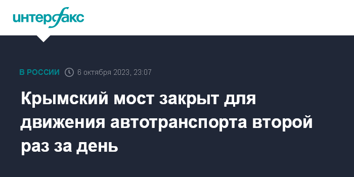 Крымский мост закрыт для движения автотранспорта второй раз за день