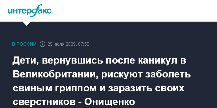 Дети, вернувшись после каникул в Великобритании, рискуют заболеть свиным гриппом и заразить своих сверстников - Онищенко