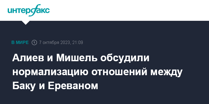 Москва. 7 октября. INTERFAX.RU - Председатель Евросовета Шарль Мишель сообщил, что провел телефонный разговор с президентом Азербайджана Ильхамом Алиевым.