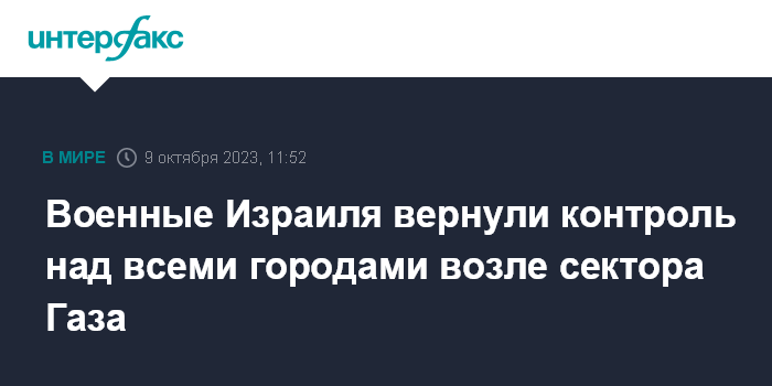 Москва. 9 октября. INTERFAX.RU - Израильские военные вновь взяли под контроль все населенные пункты у границы с сектором Газа, заявил в понедельник представитель Армии обороны Израиля (ЦАХАЛ) контр-адмирал Даниэль Хагари.