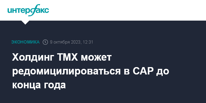 Холдинг ТМХ может редомицилироваться в САР до конца года
