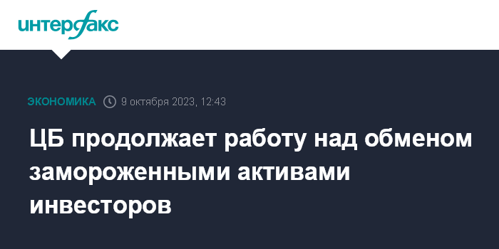 ЦБ продолжает работу над обменом замороженными активами инвесторов