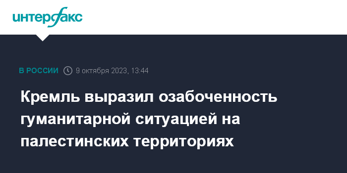 Кремль выразил озабоченность гуманитарной ситуацией на палестинских территориях