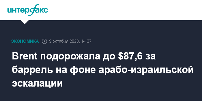Москва. 9 октября. INTERFAX.RU - Котировки нефти растут на фоне эскалации палестино-израильского конфликта.