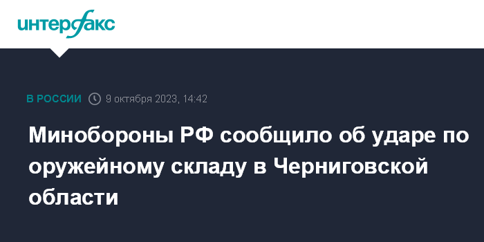 Минобороны РФ сообщило об ударе по оружейному складу в Черниговской области
