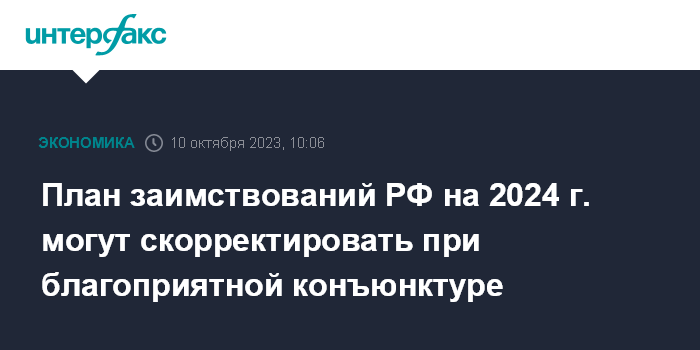 Москва. 10 октября. INTERFAX.RU - Планы по объемам заимствований на внутреннем рынке в 2024 году могут быть скорректированы, если будет складываться благоприятная конъюнктура, сообщил министр финансов РФ Антон Силуанов.
